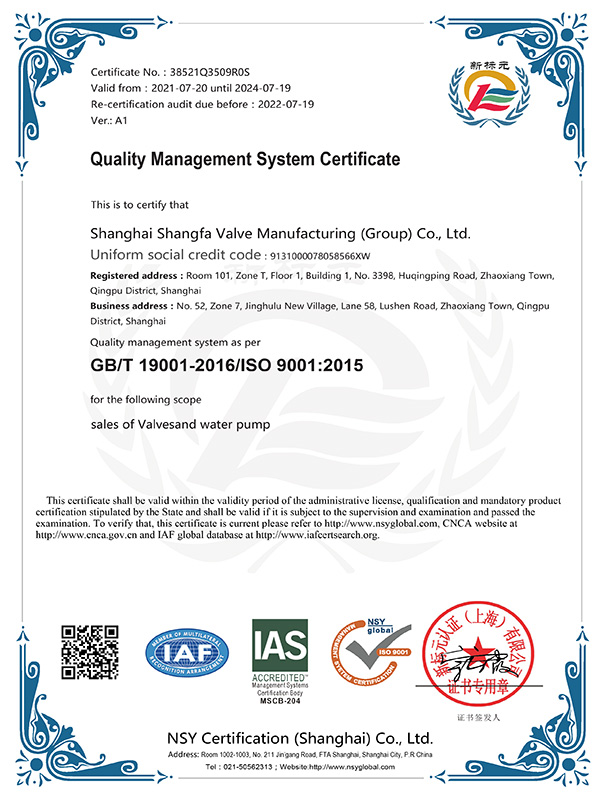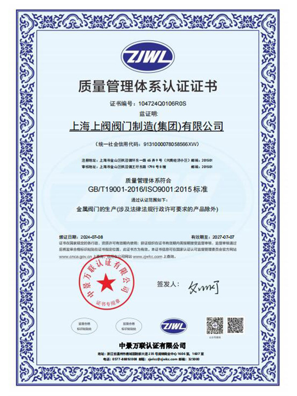 质量管理体系认证证书